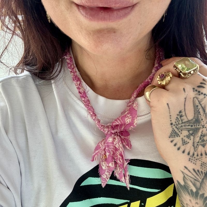 Deze speciale bandana ketting is een gevlochten ketting, gemaakt van 100% katoen van stof ontworpen door Joyas Vida. De ketting kan over het hoofd worden omgedaan en wordt afgewerkt met een uniek Navalon & Danté logo bedeltje. Bekijk hier alle bandana kettingen.
