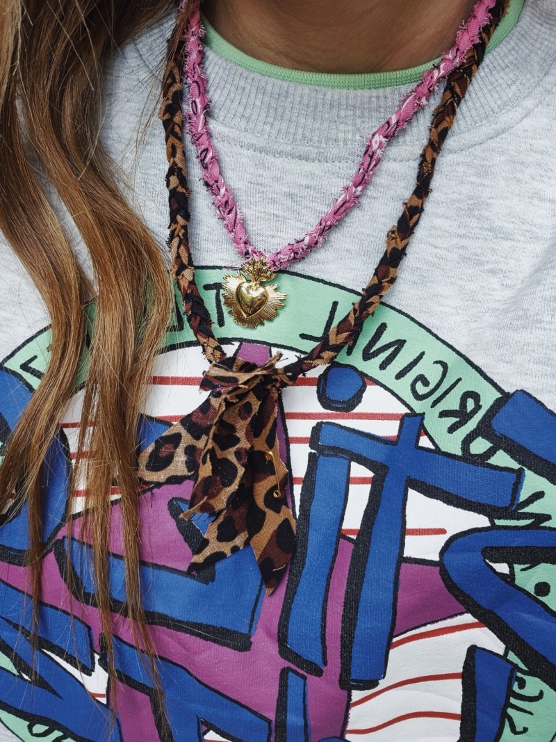 De bandana ketting is een gevlochten ketting, gemaakt van 100% katoen en is in verschillende kleuren beschikbaar. De ketting kan over het hoofd worden omgedaan en bevat een uniek Navalon & Danté logo bedeltje met een roze smiley. Bekijk hier alle bandana kettingen.