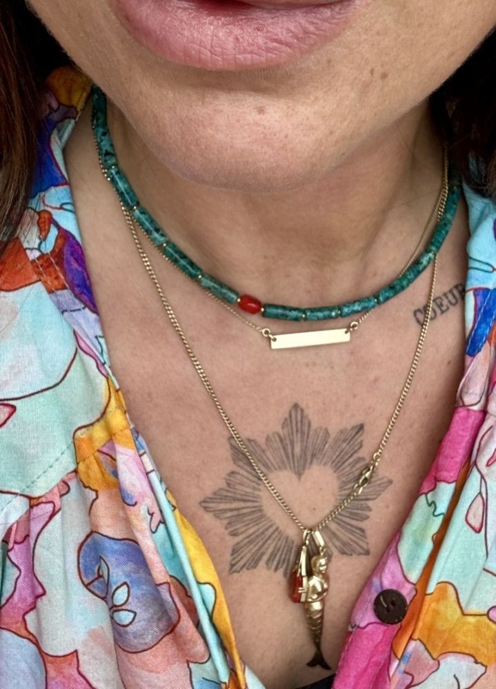 Bliss necklace van Malachiet Jaspis en Koraal