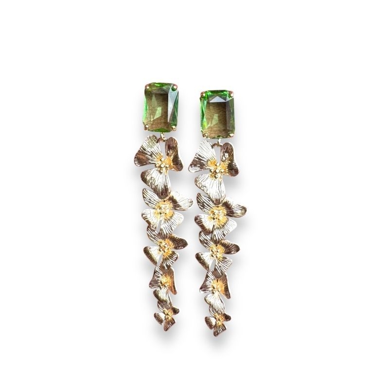 Deze prachtige oorbellen (set van 2 stuks) gemaakt van stainless bloemen en een lime-groene steker passen bij iedere mood. Je kunt de oorbellen als set dragen, maar je kunt er ook voor kiezen de oorbel enkel te dragen als onderdeel van je ear-party.