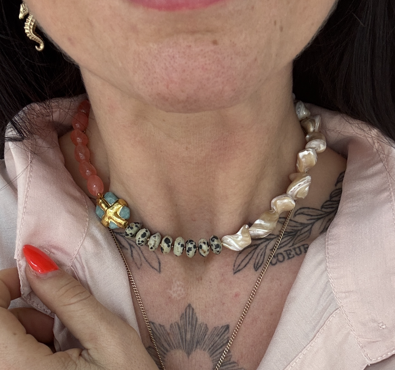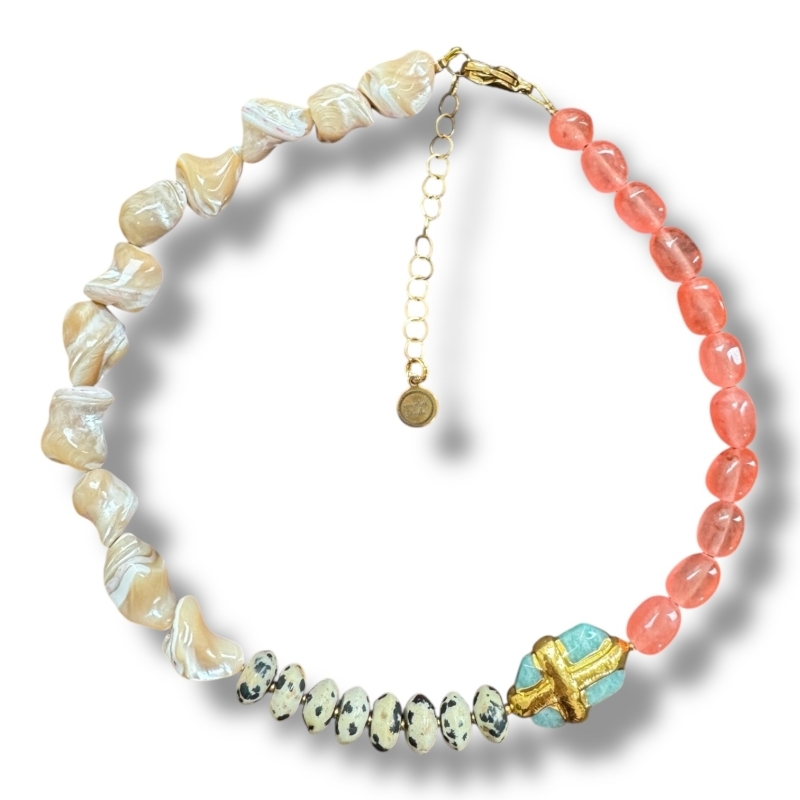 Felice Necklace van Chalcedoon, Jaspis, Schelp en Amazoniet