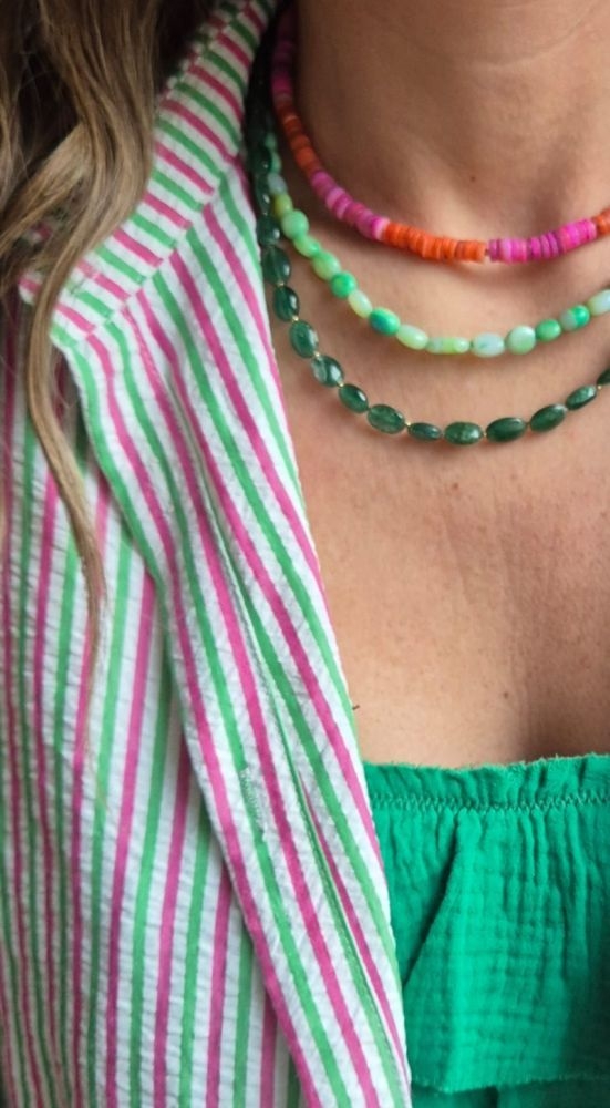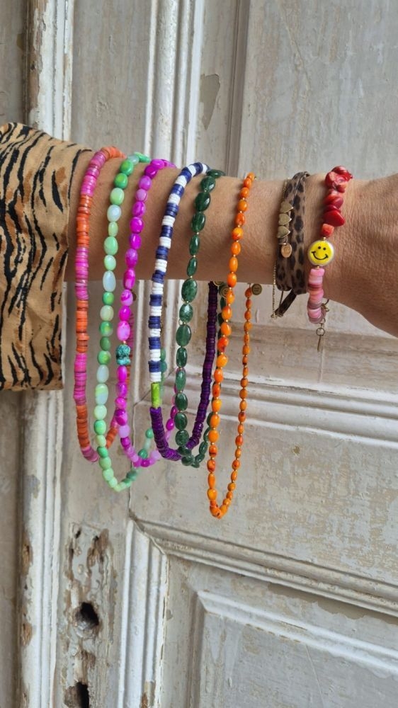 Wij adviseren om je sieraden af te doen tijdens het slapen; douchen; zonnen / zwemmen en sporten. Zout, chloor, maar ook parfum en verzorgingsproducten als haarspray en cremes kunnen de beschermlaag van het RVS of de plating van andere kralen die we gebruiken aantasten. Niet alle edelsteen-soorten kunnen daarnaast tegen water en deze kunnen doffer worden of zelfs verkleuren wanneer deze hiermee in aanraking komen. Het kan altijd voorkomen dat een RVS slotje verkleurt, dit kan te maken hebben met de zuurtegraad van de huid (deze verschilt per persoon). Bewaar je sieraden wanneer je ze niet draagt in het zakje dat je bij je bestelling geleverd krijgt.