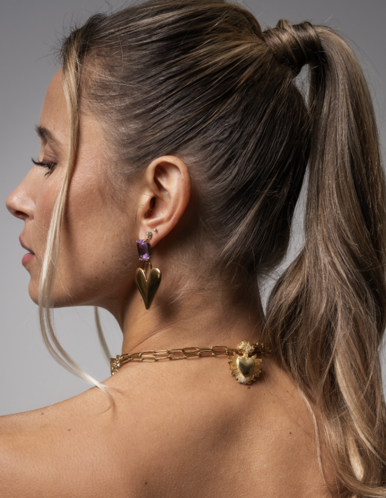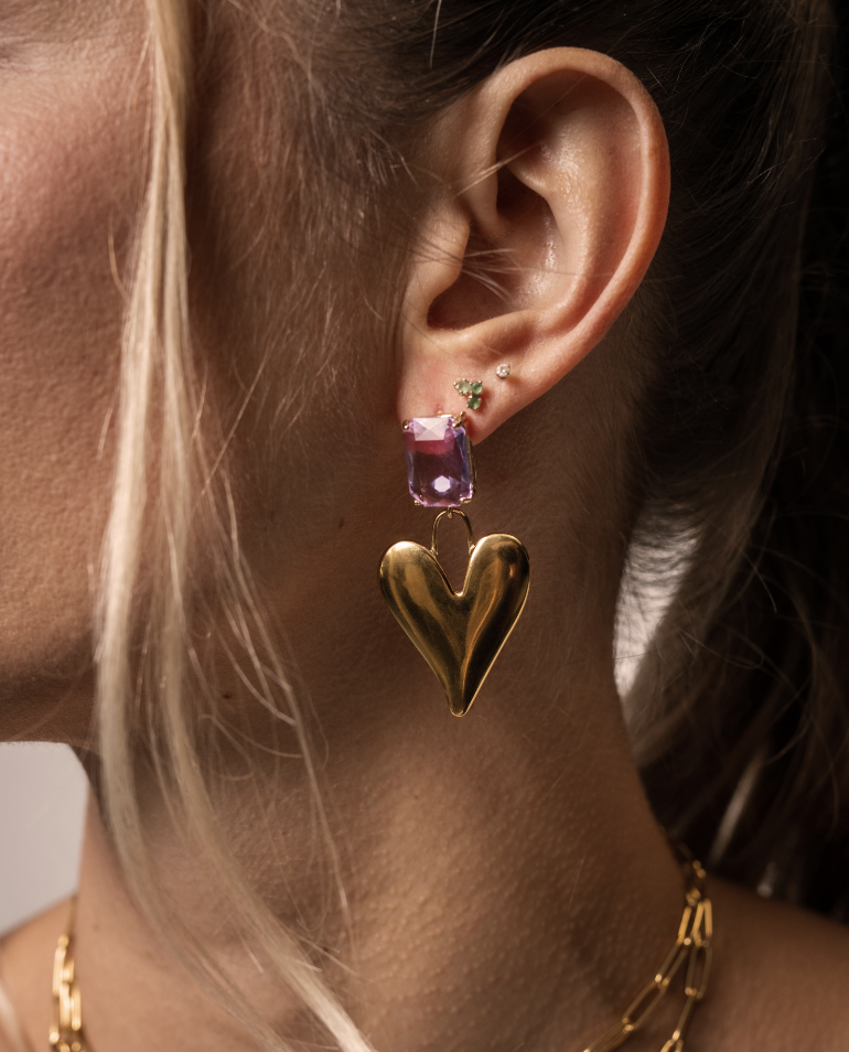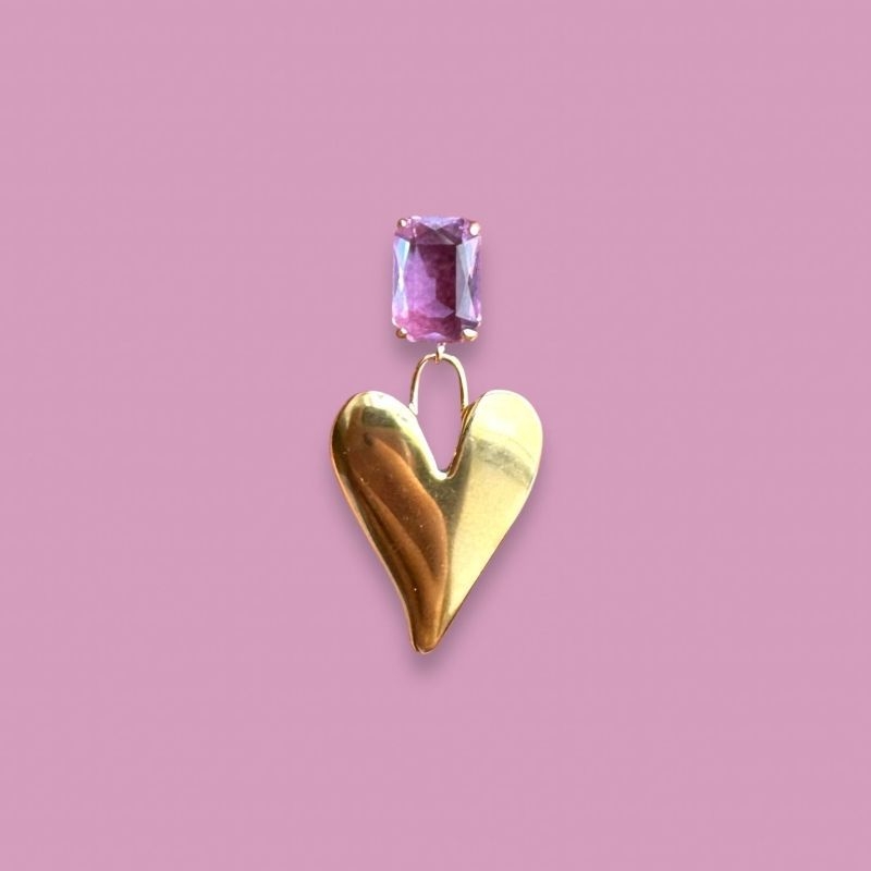 Deze prachtige oorbel met Lila steen en stainless hart is een ware blikvanger.