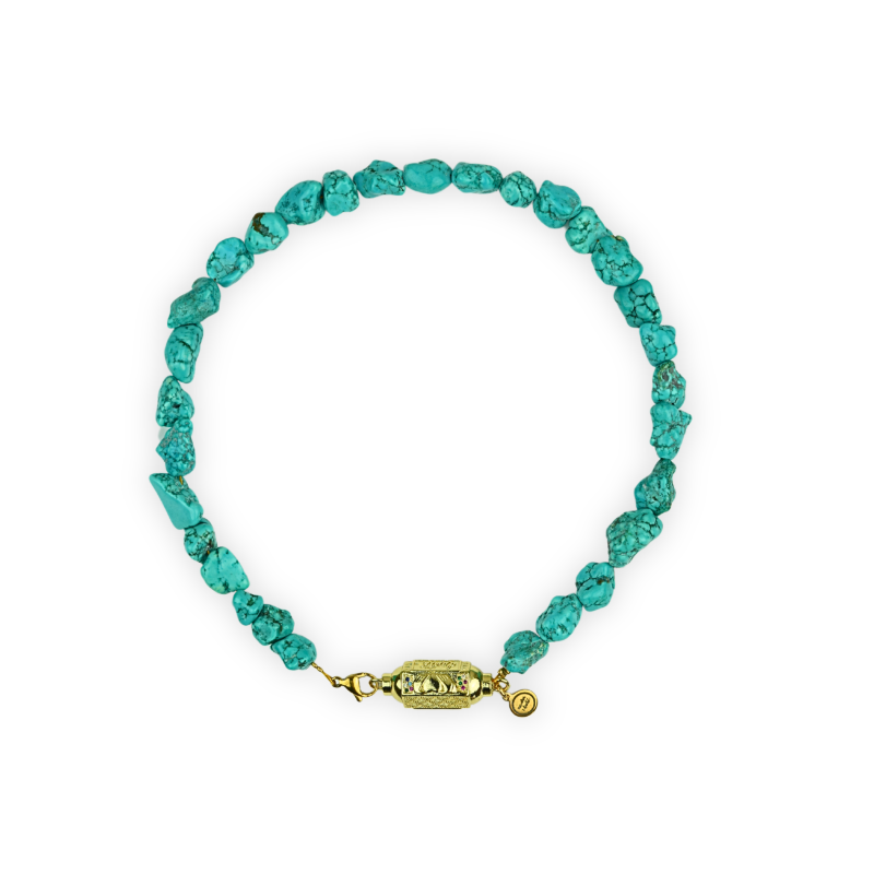 Deze wishbox ketting is gemaakt van robuuste turqoise stenen.