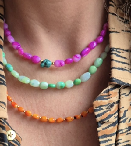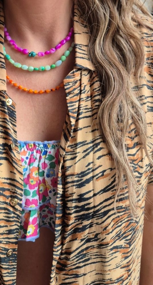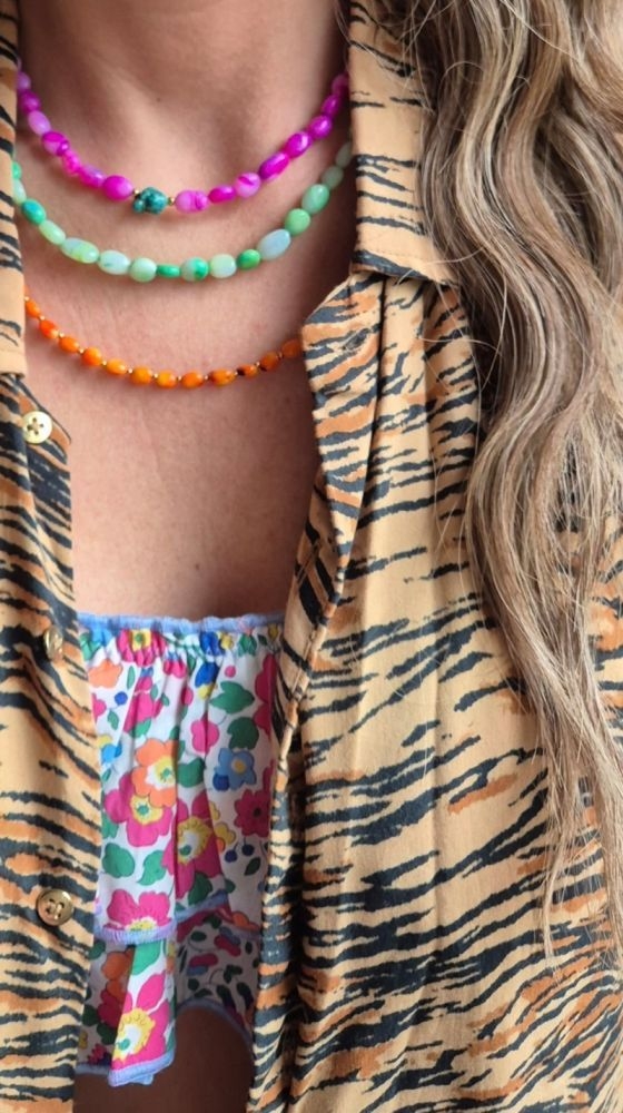 Wij adviseren om je sieraden af te doen tijdens het slapen; douchen; zonnen / zwemmen en sporten. Zout, chloor, maar ook parfum en verzorgingsproducten als haarspray en cremes kunnen de beschermlaag van het RVS of de plating van andere kralen die we gebruiken aantasten. Niet alle edelsteen-soorten kunnen daarnaast tegen water en deze kunnen doffer worden of zelfs verkleuren wanneer deze hiermee in aanraking komen. Het kan altijd voorkomen dat een RVS slotje verkleurt, dit kan te maken hebben met de zuurtegraad van de huid (deze verschilt per persoon). Bewaar je sieraden wanneer je ze niet draagt in het zakje dat je bij je bestelling geleverd krijgt.