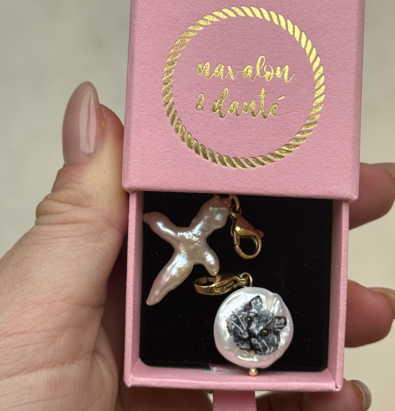 (portret of foto dier) Handbeschilderde, gepersonaliseerde zoetwaterparel - bedel