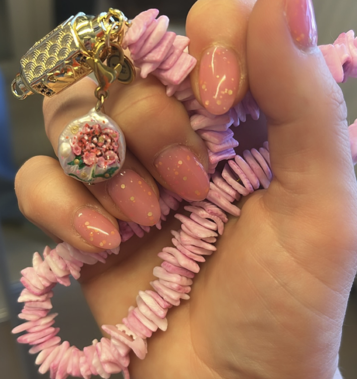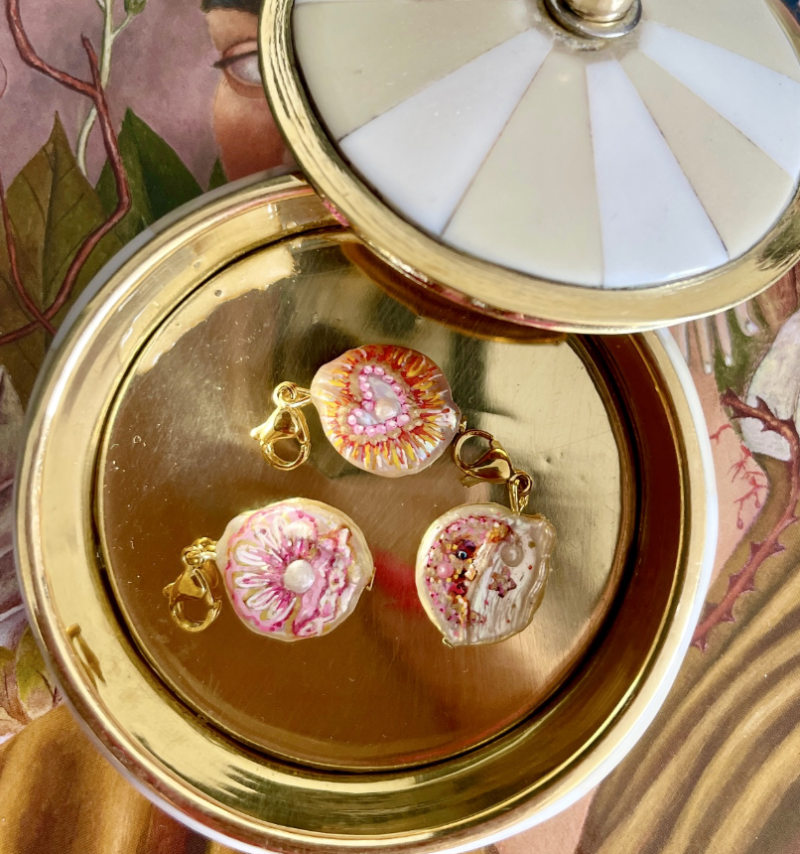 Handbeschilderde zoetwaterparels door Flowerbombartist