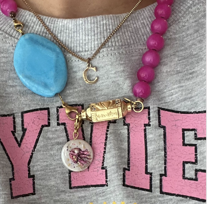 Wil je een gepersonaliseerde parel liever verwerkt zien in een ketting, dan is dat natuurlijk ook mogelijk. Standaard is de handbeschilderde parel te verkrijgen in de Ashtanga necklace, maar wil jij liever een andere ketting (zie voorbeelden) dan kan dat zeker ook. Kies dan voor de optie gepersonaliseerde ketting en geef in het opmerkingenveld door wat jij op je parel wenst en van welke materialen de rest van de ketting mag worden.