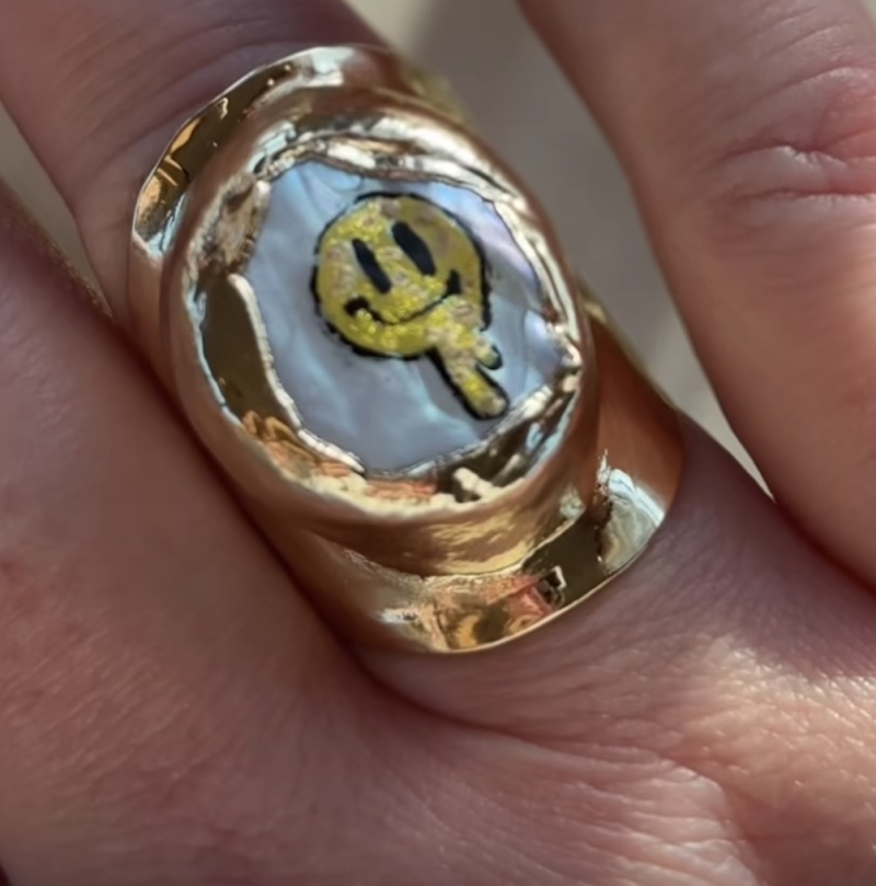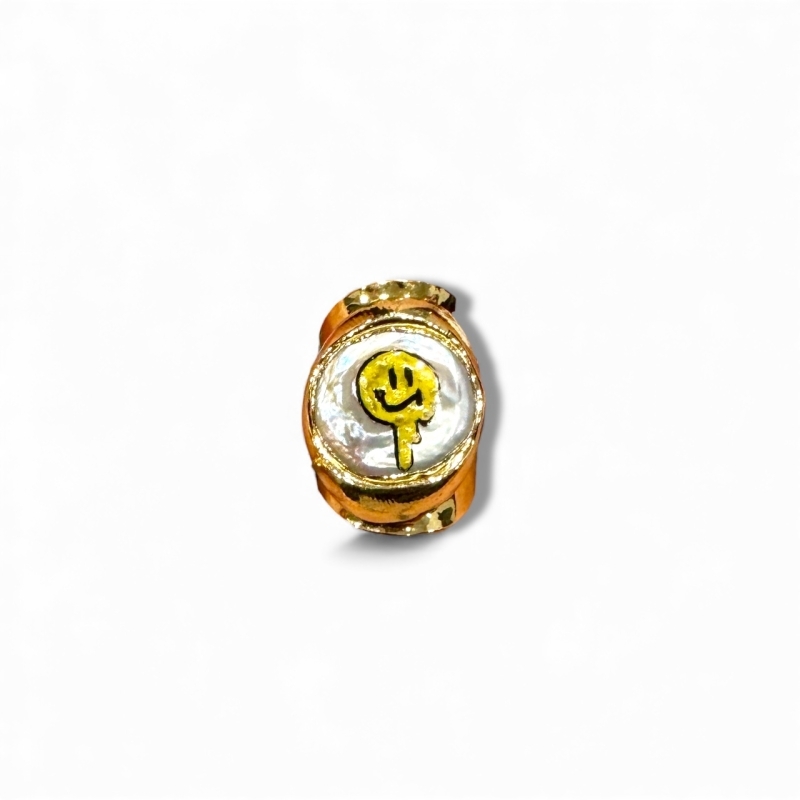 Smile Me ring met handbeschilderde zoetparel met smiley