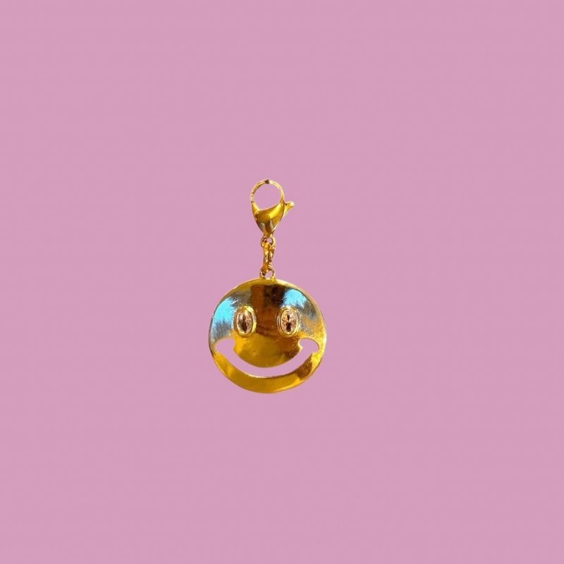 Deze gouden RVS smiley met strass-oogjes geeft een speelse touch aan jouw look. Deze bedel staat te gek aan jouw bedel ketting of als extra add on aan je wishbox ketting.