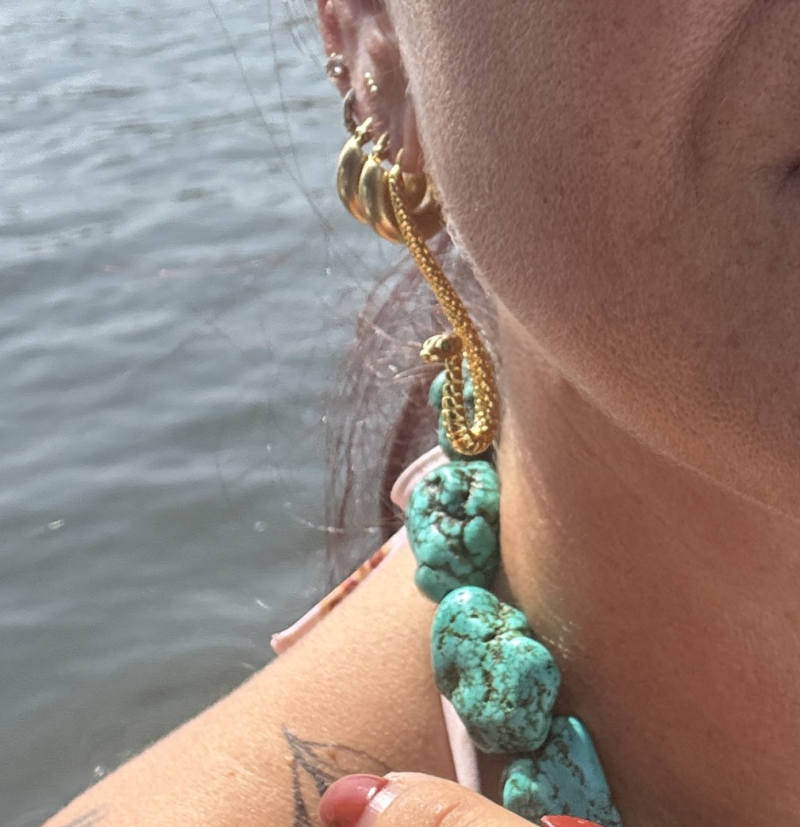 Deze statement oorbellen in de vorm van een slang passen bij iedere outfit. Bekijk hier onze andere oorbellen.