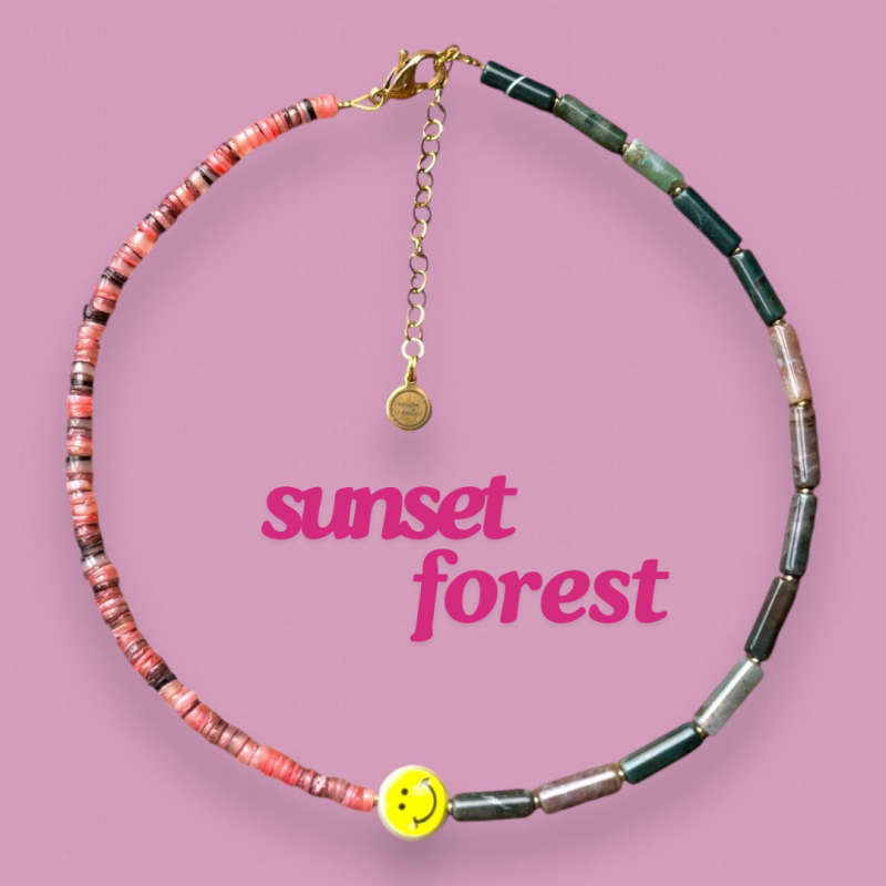 Sunset Forest necklace van (Indian) Agaat en schelp