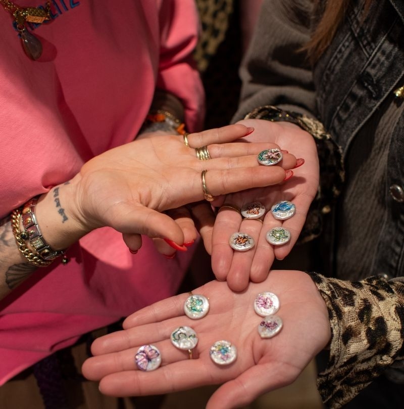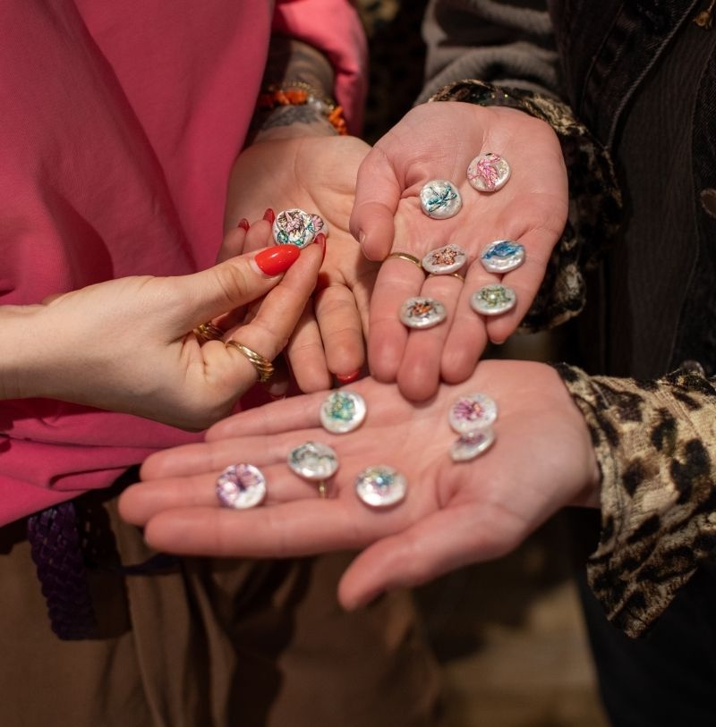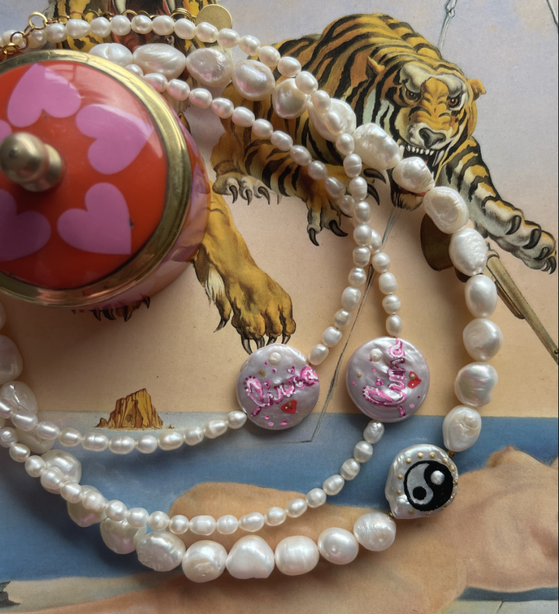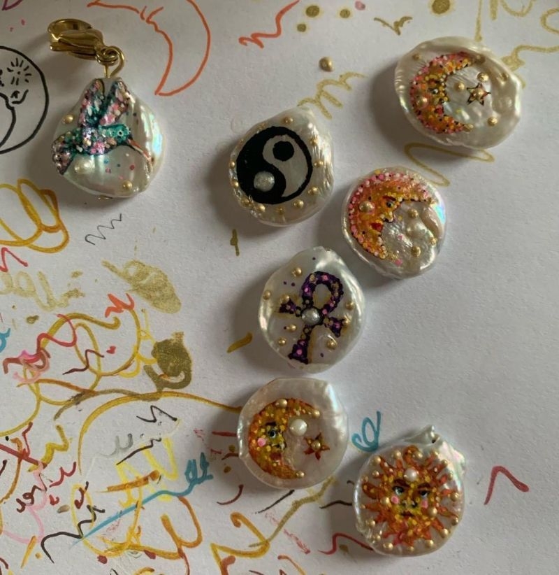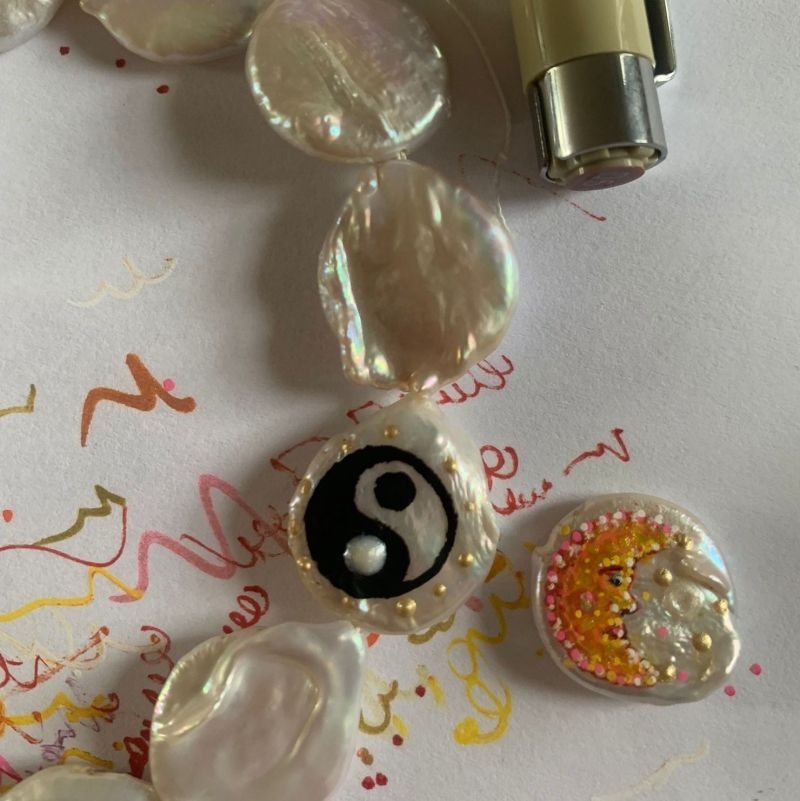 Handbeschilderde zoetwaterparels door Flowerbombartist