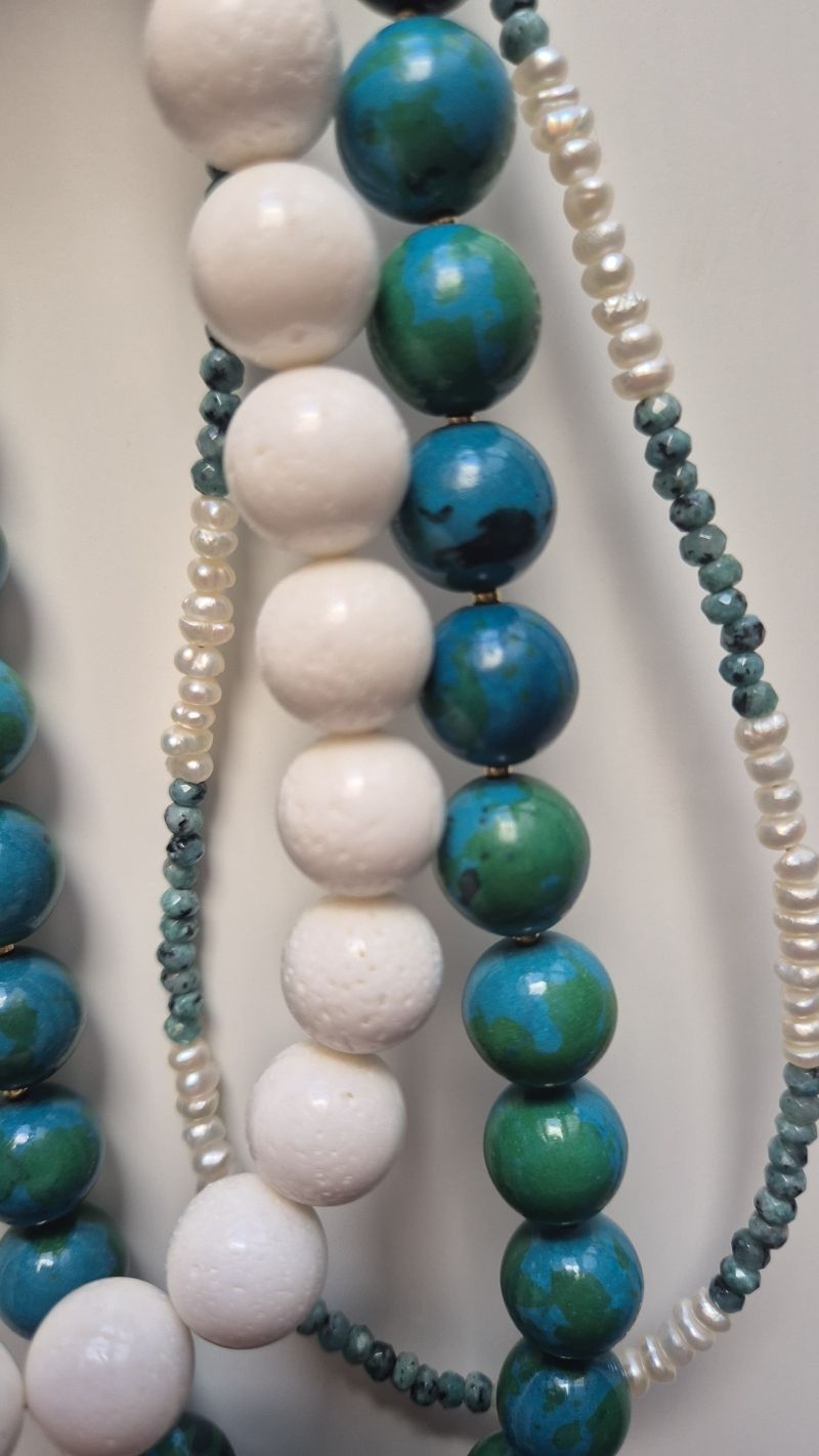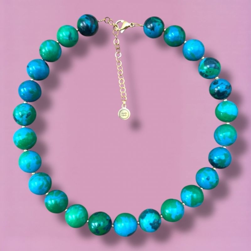 - Bevordert Emotionele Vrijheid: De combinatie van Chrysocolla, Malachiet en Turkoois helpt bij het loslaten van oude emotionele wonden en negatieve patronen. Dit kan bijdragen aan het voelen van bevrijding en emotionele helderheid.