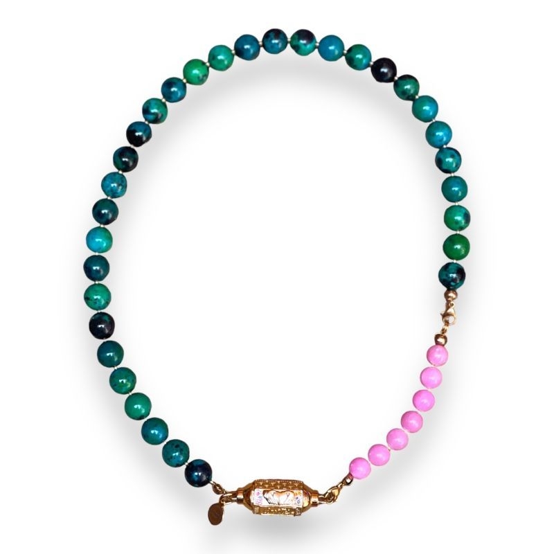 Deze ketting is gemaakt blauwgroene Quantum Quattro.