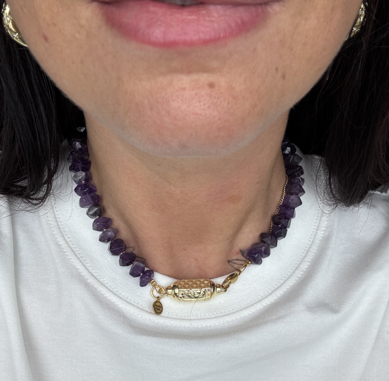 Ben jij op zoek naar een steen die je ondersteunt in je spirituele groei, je helpt eerlijk naar jezelf te kijken, ongewenst gedrag te doorzien en in een actieve houding te komen? Wil jij beter leren luisteren naar jouw intuïtie? Deze steen bevordert je inzicht in je emotionele processen en helpt bij de verwerking van trauma; verlies (zoals rouw) en loslaten - van gevoelens van teleurstelling, wanhoop of somberheid. Amethist werkt beschermend en zuiverend. Gebruik deze steen in combinatie met bergkristal en rozenkwarts en je zult harmonie ervaren. De steen helpt zonder oordeel maar met compassie te kijken naar anderen en jezelf en helpt te relativeren. Fysiek helpt amethist tegen hoofdpijn, slaap problematiek (inslapen, doorslapen en nachtmerries), stress, verbetering van de concentratie, bloed(omloop).