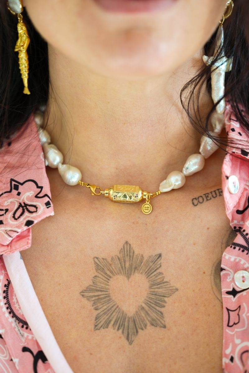 De parels van wishbox necklace Brooklyn hebben een witte kleur.