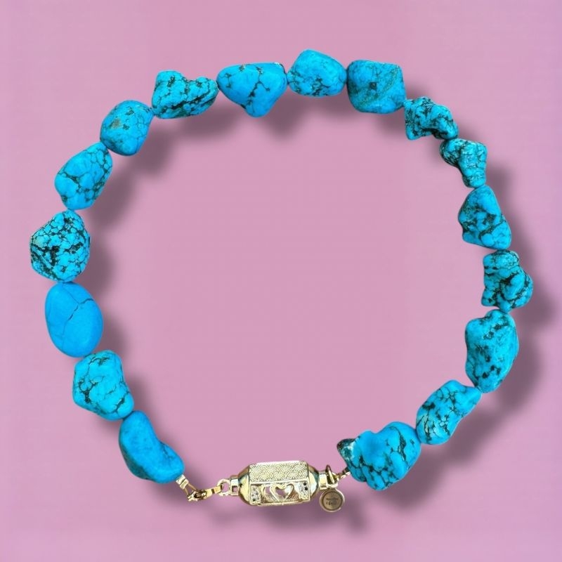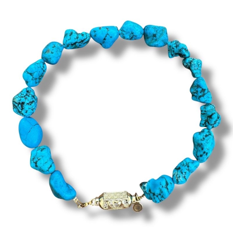 Ben je op zoek naar evenwicht en balans? Rust, kalmte? Of heb je last van stemmingswisselingen of depressie? Turqoise werkt beschermend en zuiverend en is goede ondersteuning bij diverse lichamelijke en geestelijke ongemakken. Turqoise is een geneeskrachtige steen die enerzijds kalmerend werkt; anderzijds werkt deze vitaliserend bij bijvoorbeeld vermoeidheid of uitputting. Turqoise beschermt je bij overgevoeligheid voor invloeden van buitenaf en versterkt je immuunsysteem. De steen helpt je verantwoordelijkheid te nemen voor je eigen geluk en is een van grote kracht bij zelfacceptatie en het helen van hartzeer. Het is de steen van de zelfverwezenlijking. Ook helpt de steen bij het vinden van oplossingen voor (relatie)problemen. De steen is zeer waardevol bij geestelijke klachten als neurose; eetproblemen en paniekaanvallen. Turqoise heeft een helende werking bij zenuwpijnen; helpt bij nachtmerries en bevordert een goede slaap. Het helpt bij bloedarmoede; huidklachten; menstruatieklachten en zuur-gerelateerde klachten zoals jicht en reuma. Daarnaast helpt de steen bij last van slijmvliezen zoals aften of ontstekingen in de mond; bevordert zuurstofopname in het lichaam en afvoer van afvalstoffen.