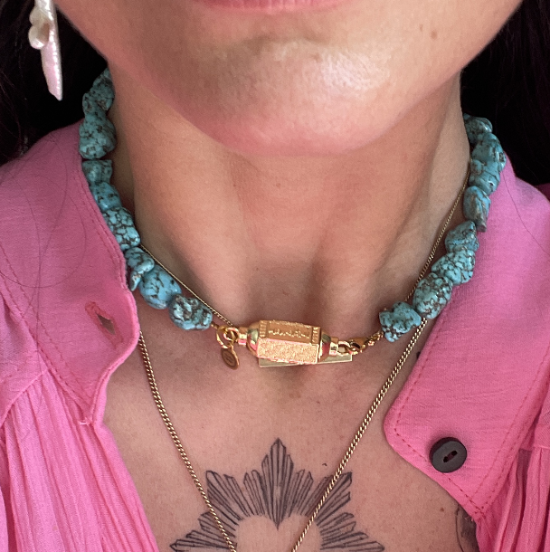 Deze wishbox ketting is gemaakt van robuuste turqoise stenen.