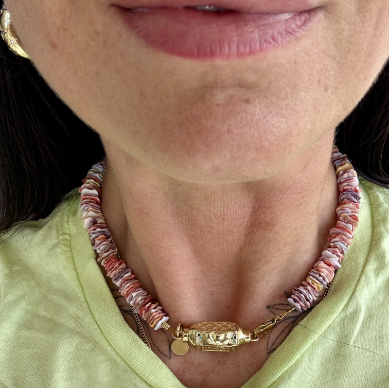 Deze wishbox ketting is gemaakt van verschillende kleurtjes schelp.