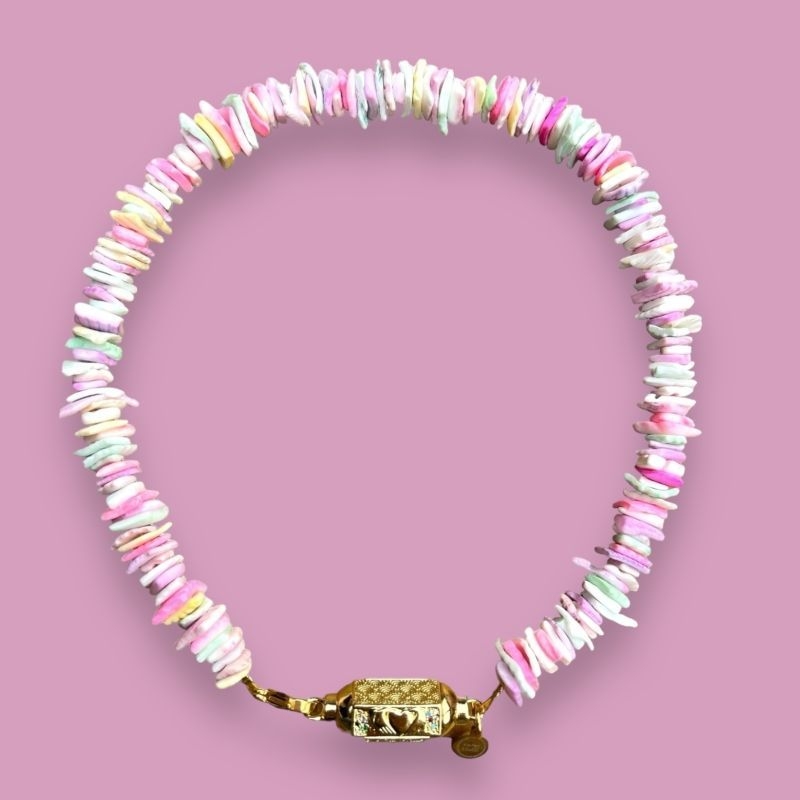 Deze wishbox ketting is gemaakt van gekleurde schelp.