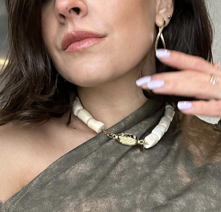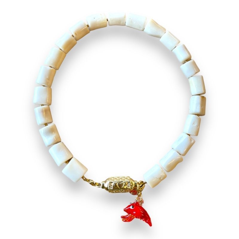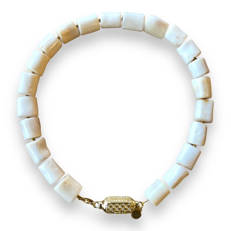 Deze ketting is gemaakt van witte koraal.