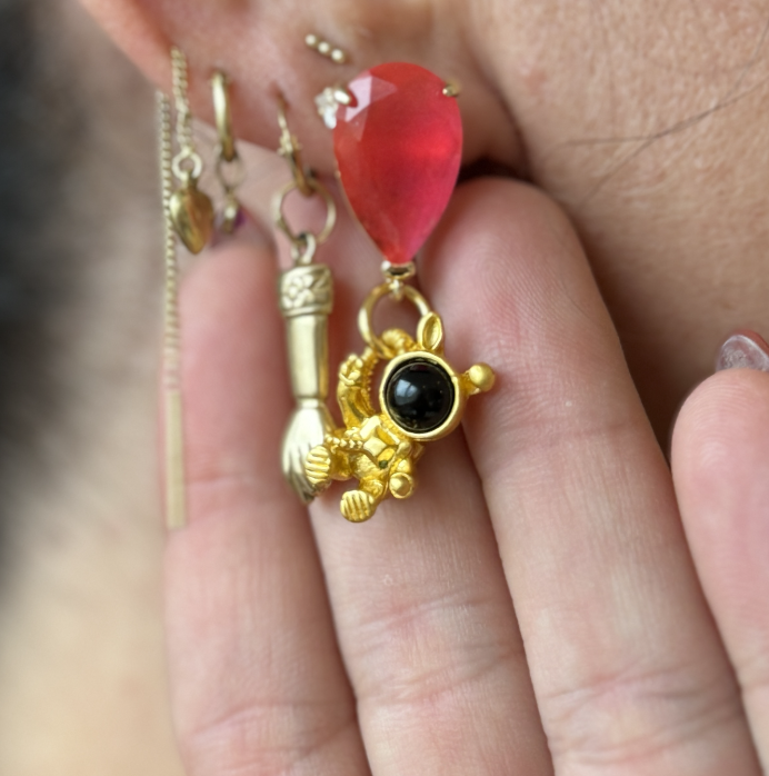 Hou jij van opvallende statement oorbellen? Dan is deze oorbel voor jou weggelegd. Deze oorbel geeft een subtiele knipoog aan jouw outfit. De oorbel wordt per stuk verkocht.